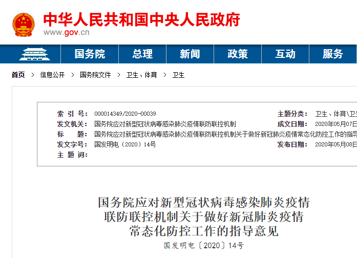 在5月8日,国务院发布了《国务院应对新型冠状病毒感染肺炎疫情联防联控机制关于做好新冠肺炎疫情常态化防控工作的指导意见》。意见指出:可举办各类必要的会议、会展活动等。
