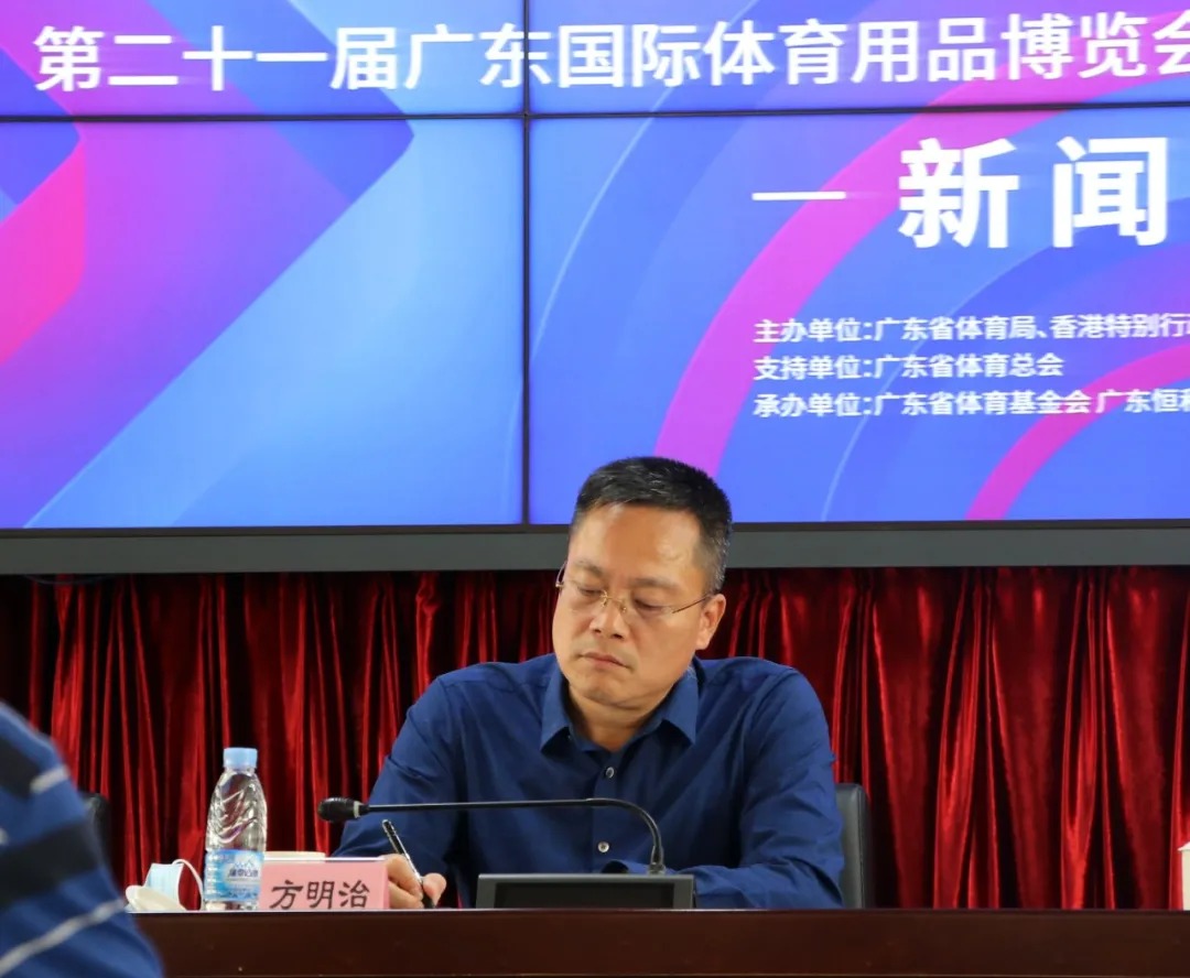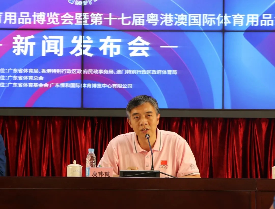 11月5日,第二十一届广东国际体育用品博览会暨第十七届粤港澳国际体育用品博览会(以下简称:广东体博会)新闻发布会在广东省体育局新闻发布厅隆重召开。广东省体育局体育产业与科教宣传处处长庾伟健、副调研员朱志刚及局机关各处室负责人、直属各单位负责人、各省级体育类协会及部分参展企业、体育培训机构、相关媒体等参加了新闻发布会。发布会由副调研员朱志刚主持。
